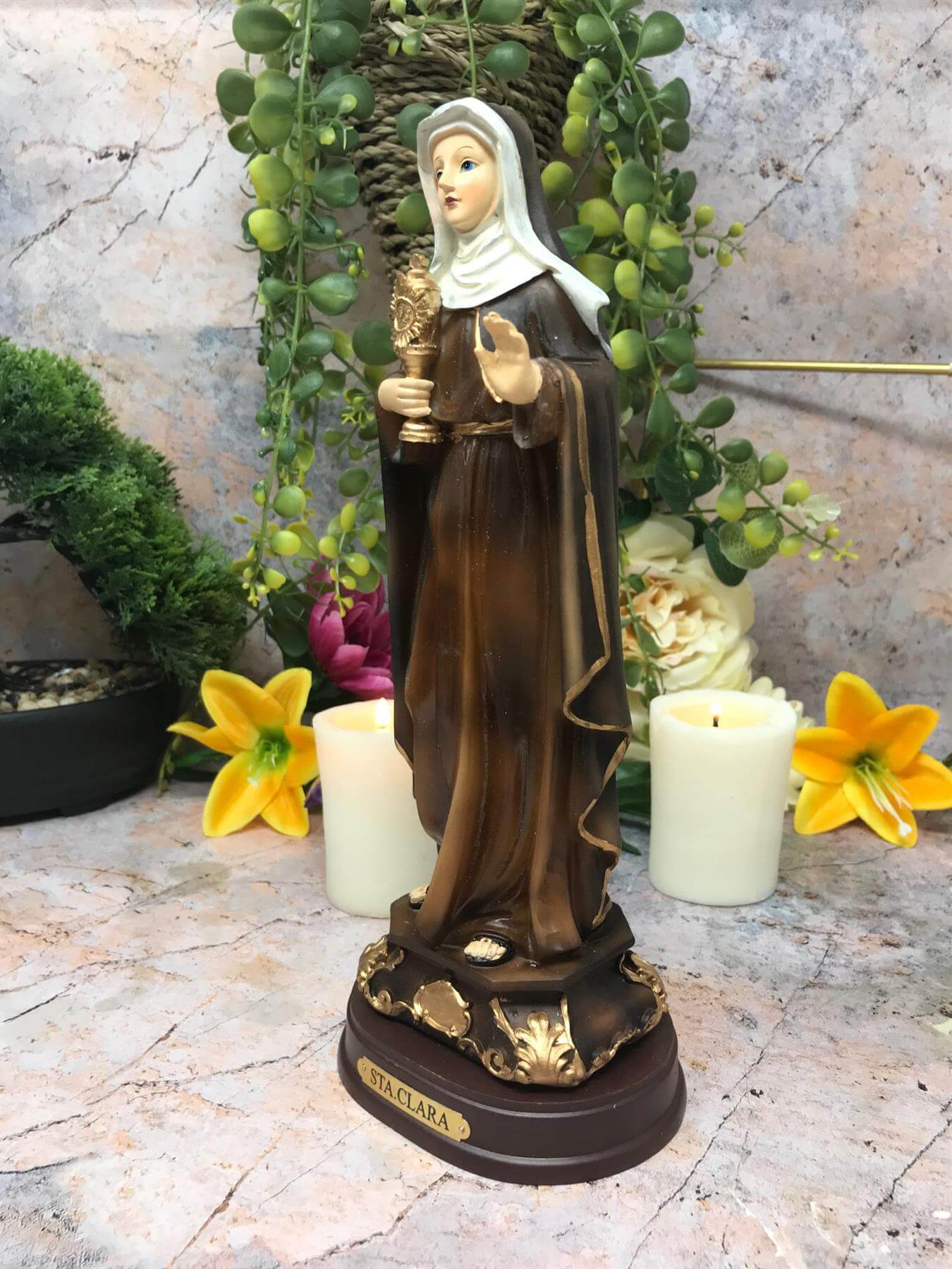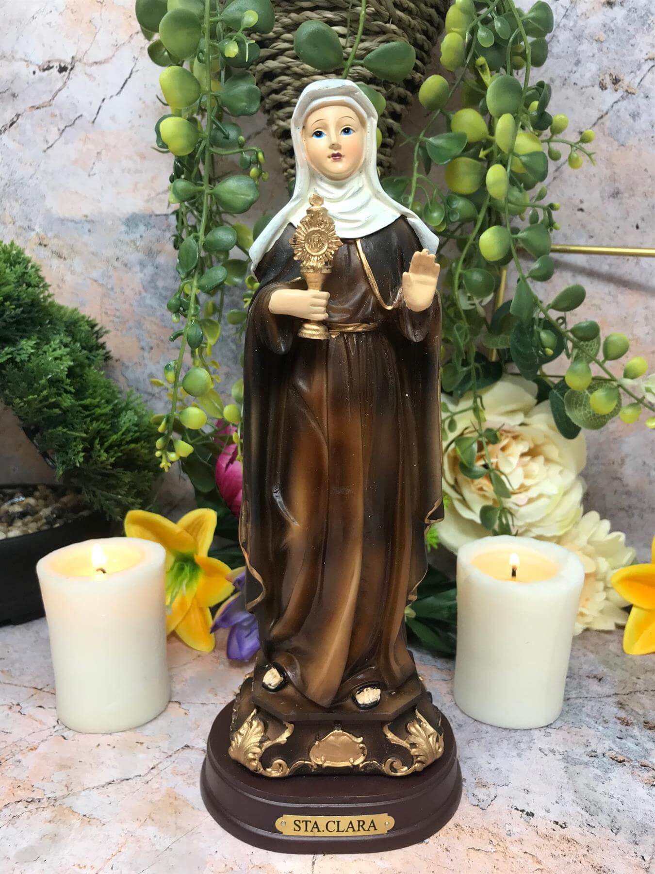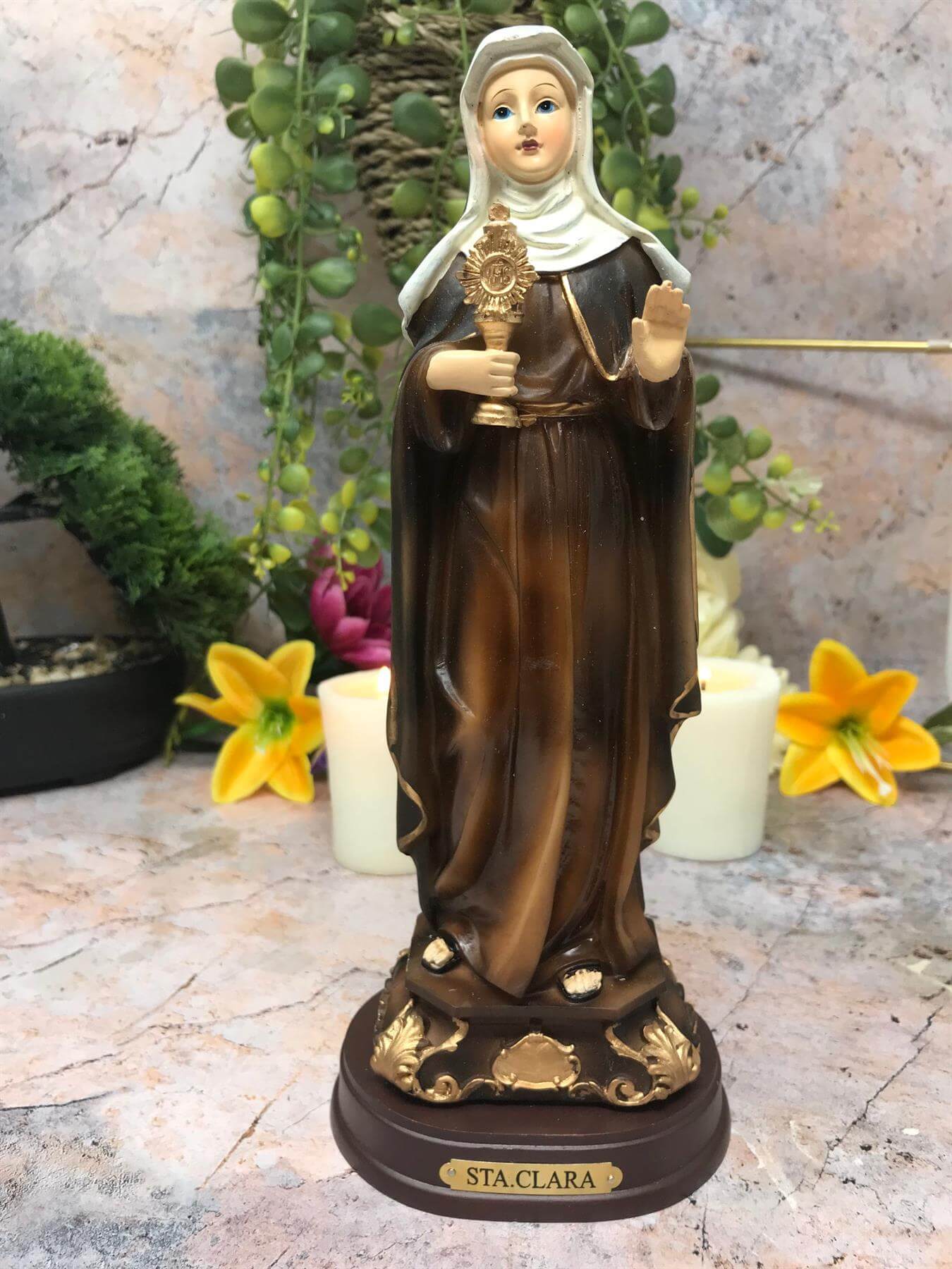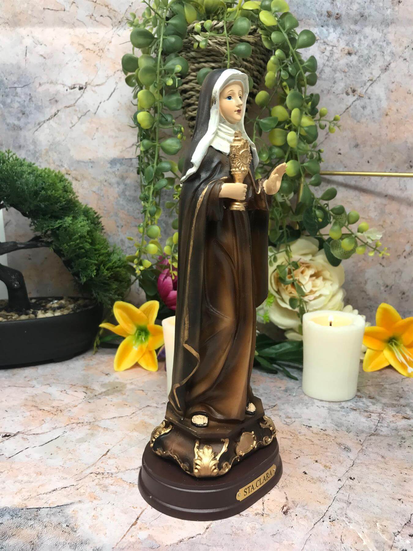 Saint Clare of Assisi Statue Catholic Saint Sculpture Religious Santa Clara Ornament Figurine for Home or Chapel