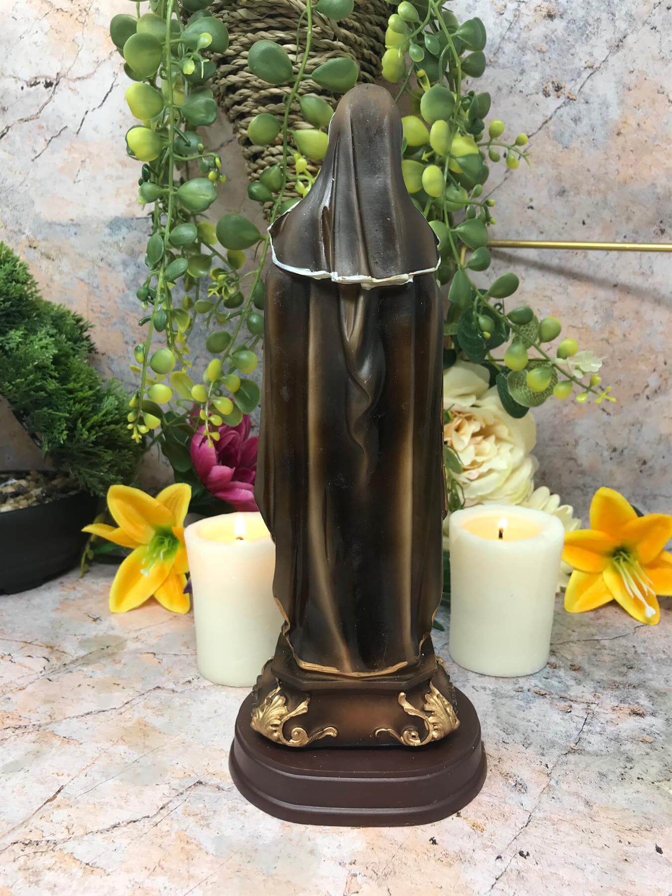 Celebrate the life and legacy of Saint Clare of Assisi with this stunning statue. Crafted with care and precision, this exquisite piece is hand-cast using designer resin and finished by skilled artisans. Standing at 24 cm tall, this statue is a perfect addition to any home or chapel.