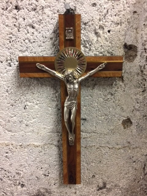 Silver Metal Corpus on Wood Wall Cross | Religious Wall Art | Christian Home Decor | Spiritual Sacred Symbol