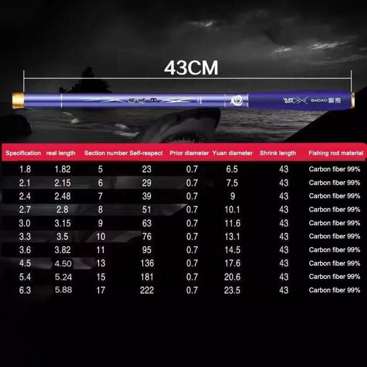 Pocket Telescopic Short Section Fishing Rod Carbon Stream Ultra Light Super Hard Mini Fishing Hand Pole, 1.8m, 2.1m, 2.4m, 2.7m, 3.0m, 3.3m, 3.6m, 4.5m, 5.4m, 6.3m