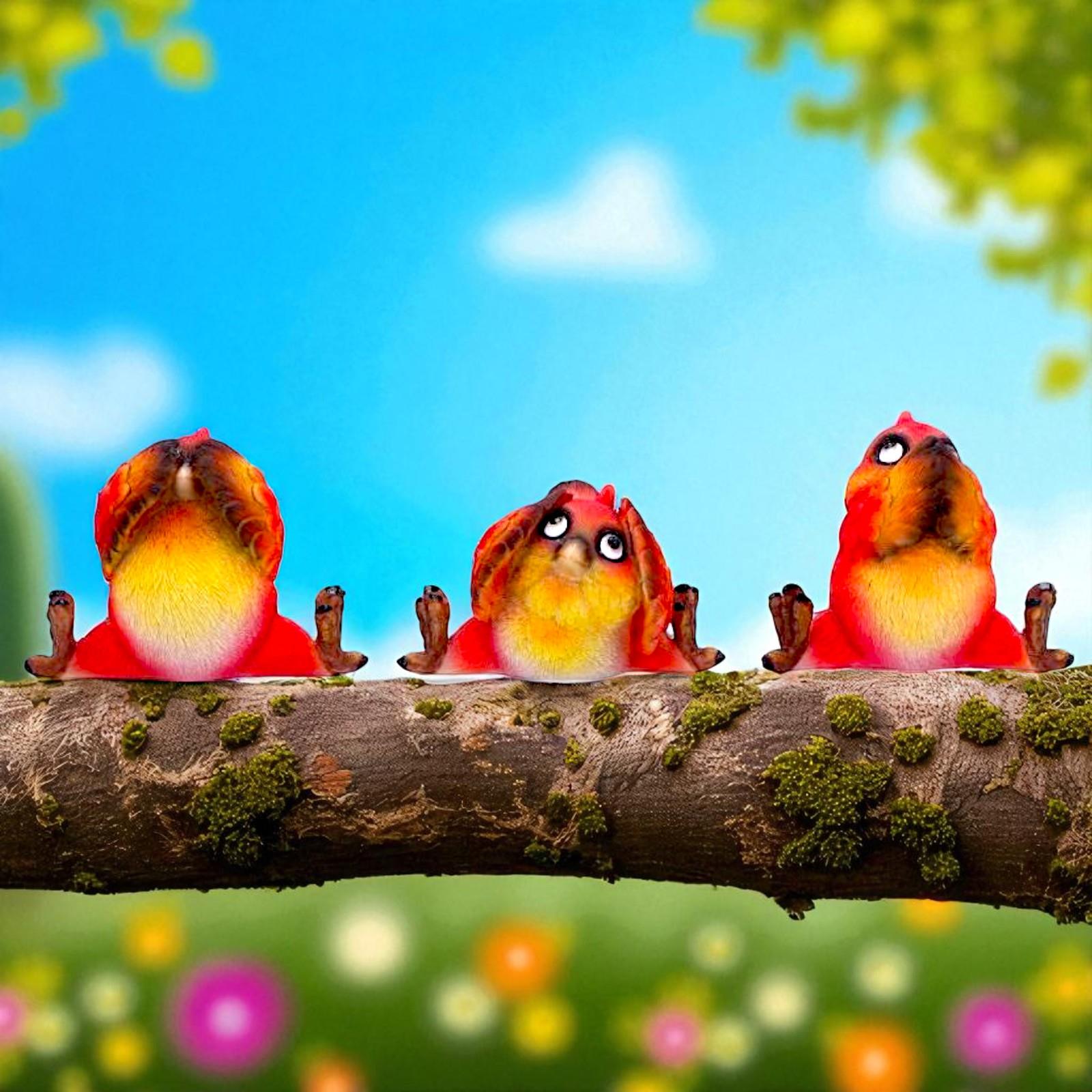 Three Wise Comical Birds Figurines See Hear Speak No Evil Wisdom Ornaments