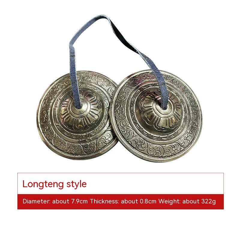 Crafted from high-quality copper, these Tibetan Tingsha Cymbals come in a variety of sizes and patterns, each with its own unique symbolism. Choose from the small brass eight auspicious symbols symbol pattern, small brass six pattern, small brass glossy, small white copper eight auspicious symbols symbol pattern, small white copper six character mantra pattern, small white copper glossy, medium bronze luster, large letters, large auspicious clouds pattern, small brass Double Dragon, white copper medium, eight treasures carving, Dragon Teng, or medium om mani peme hung suit.
