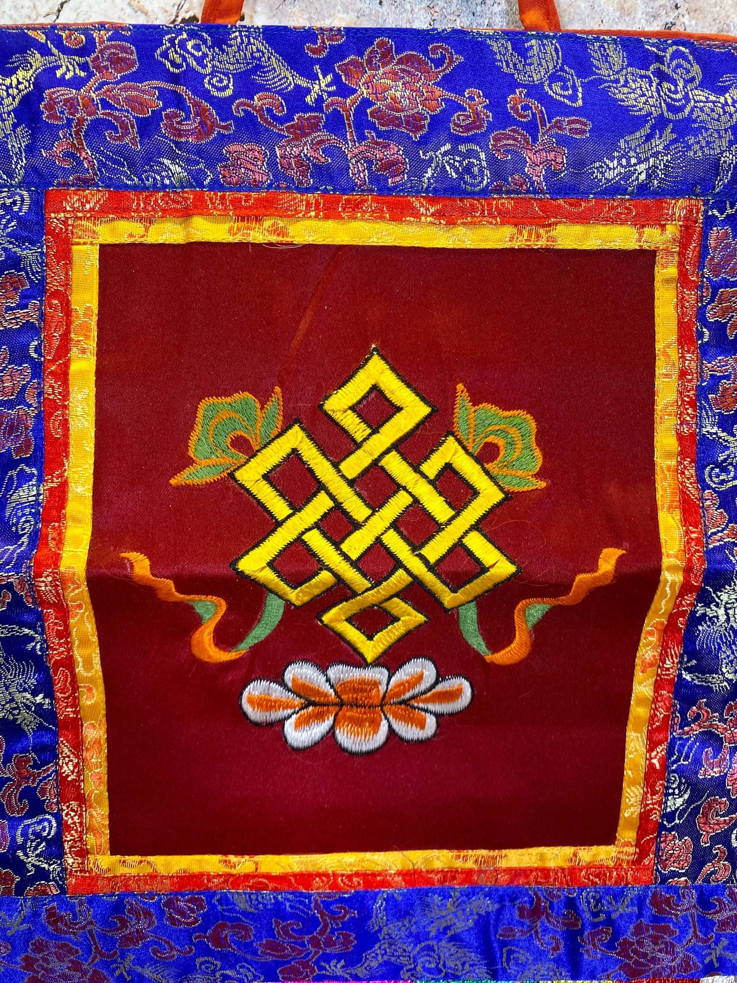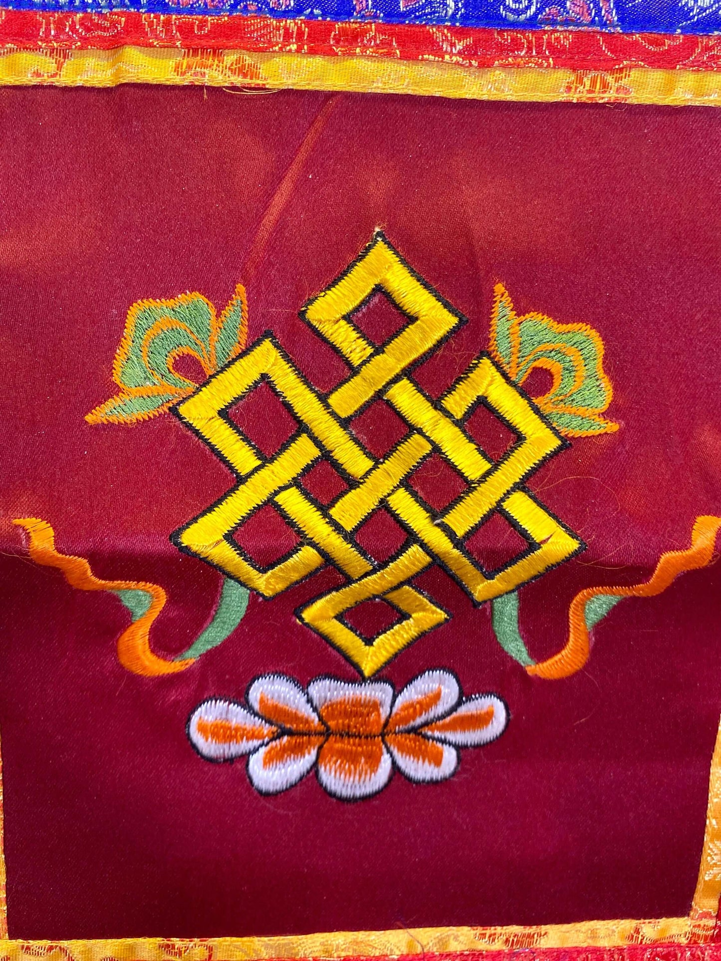 Tibetan Endless Knot Wall Hanging, Handcrafted Brocade Silk & Cotton Banner, Authentic Meditation Decor, Spiritual Symbol, 17x41cm