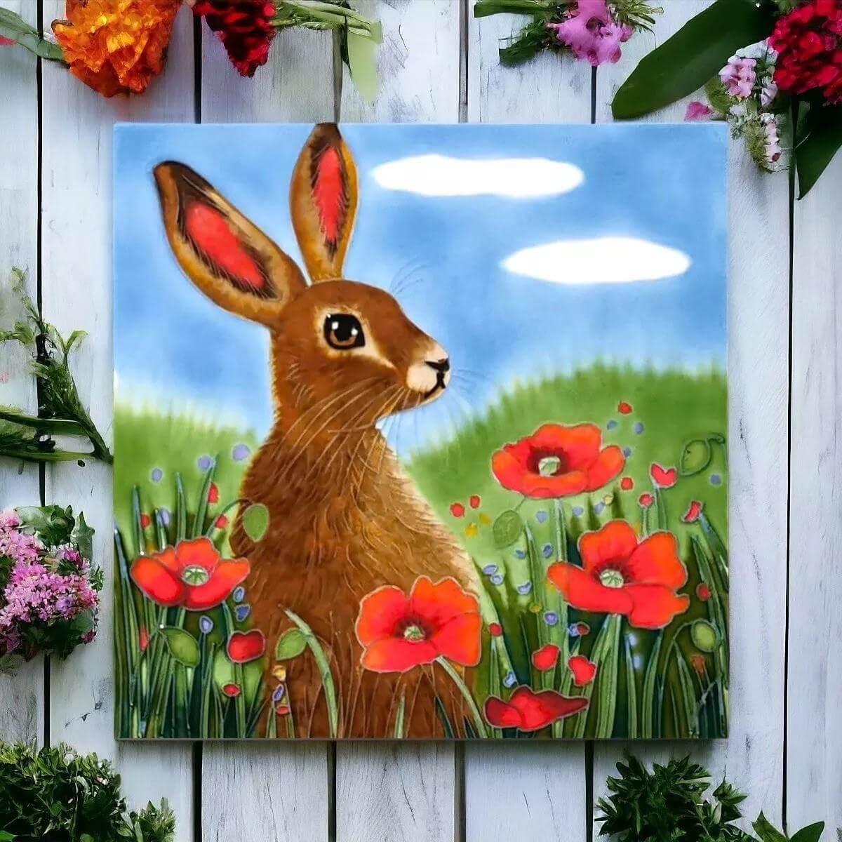 Durably crafted, the 'Poppy Hare' tile is designed to retain its vivid colours and details, ensuring that it remains a cherished part of your collection for years to come. It's more than just an ornament; it's a piece of art that captures a moment in nature, inviting a sense of calm and joy into your space.