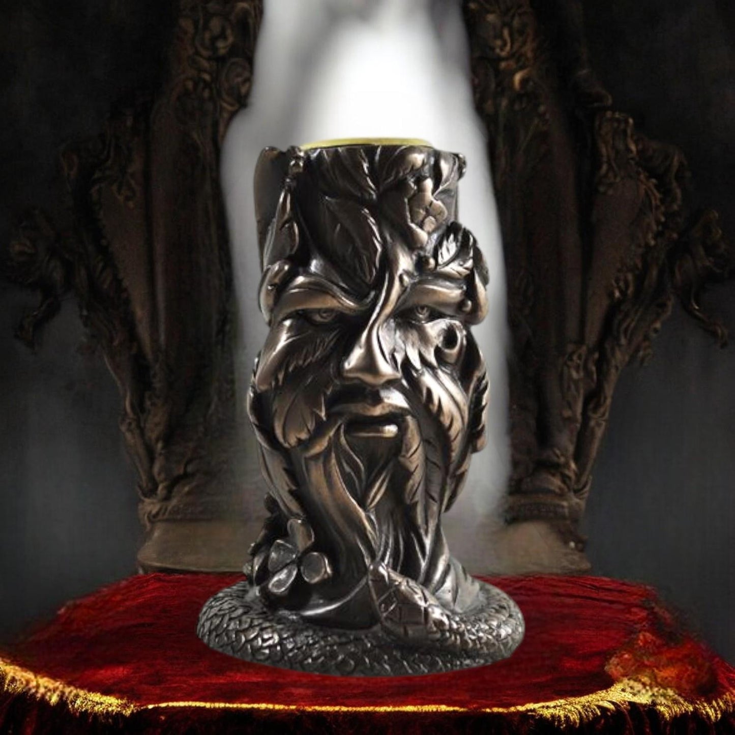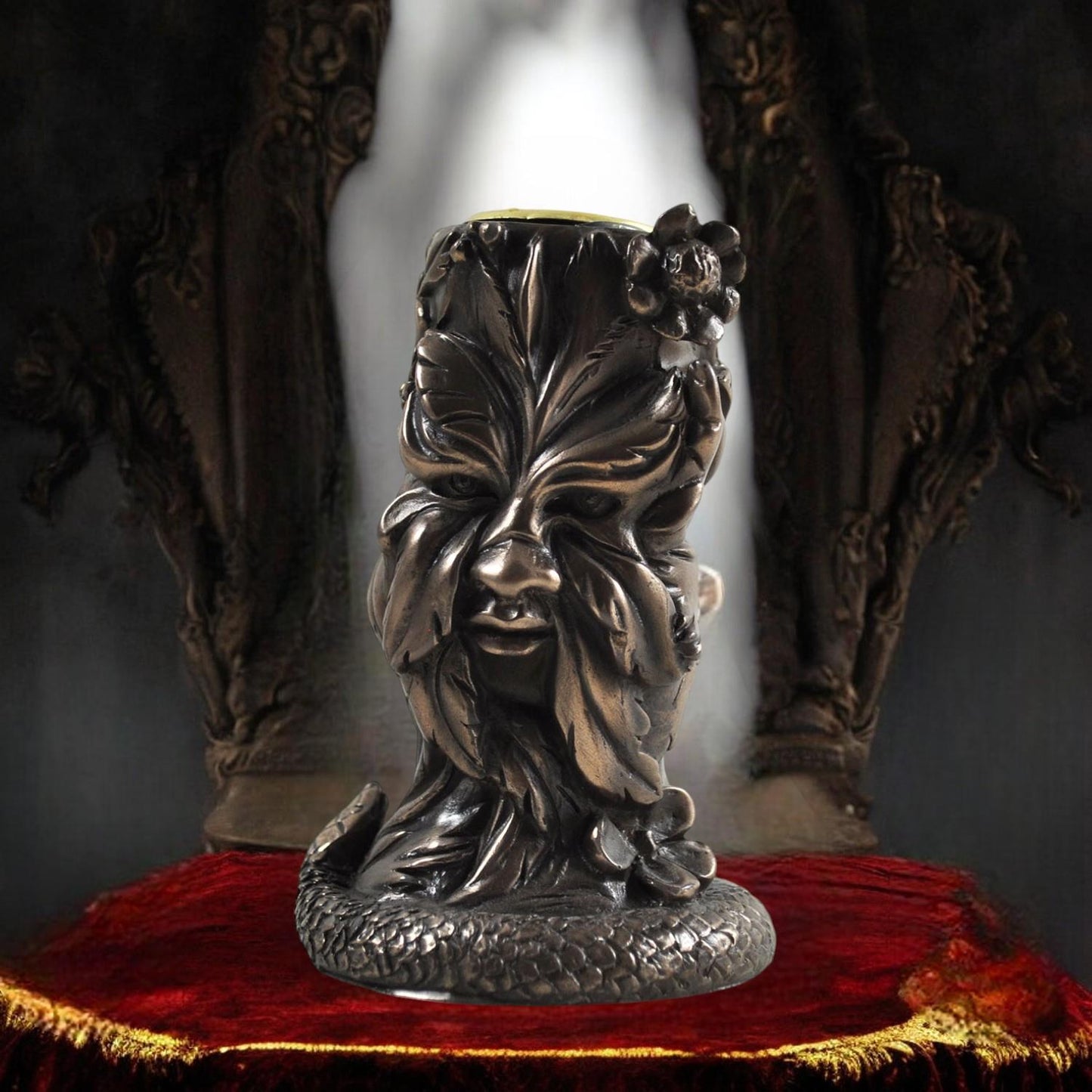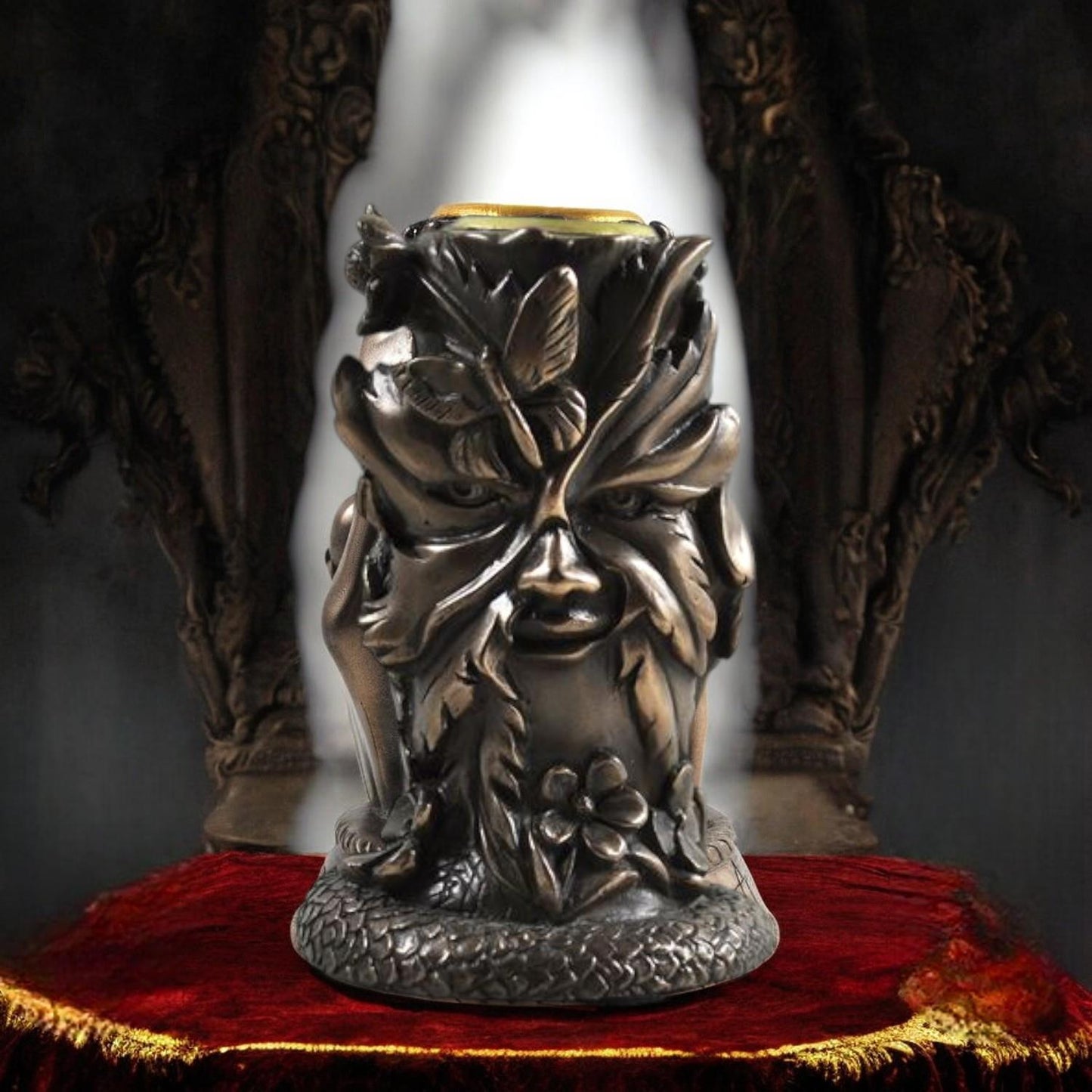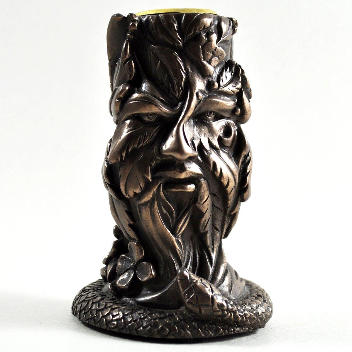 Wiccan Greenman Candle Holder - 9.2 cm Bronze Finish Pagan Decor, Nature Spirit Candle Holder